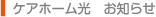 サービス付き高齢者向け住宅 ケアホーム光 所在地/〒856-0046 長崎県大村市木場1丁目994-1 TEL 0957-53-8600 FAX 0957-53-8602