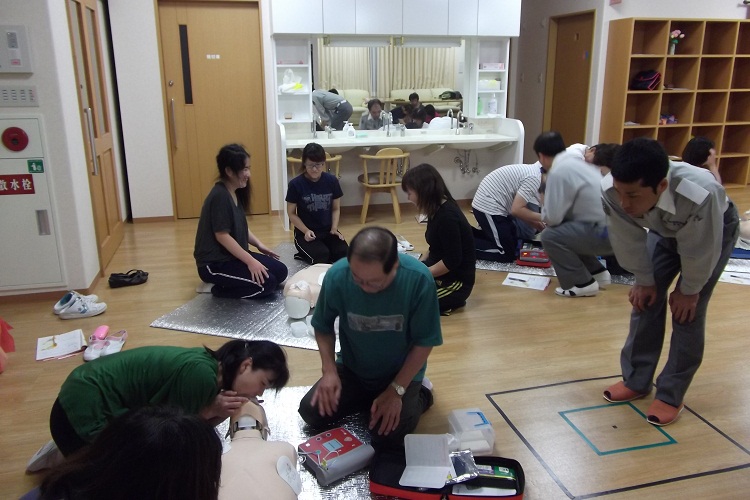 昨日、ケアホーム光のデイルームで応急手当の講習会を受け、スタッフみんな真剣に取り組みました。